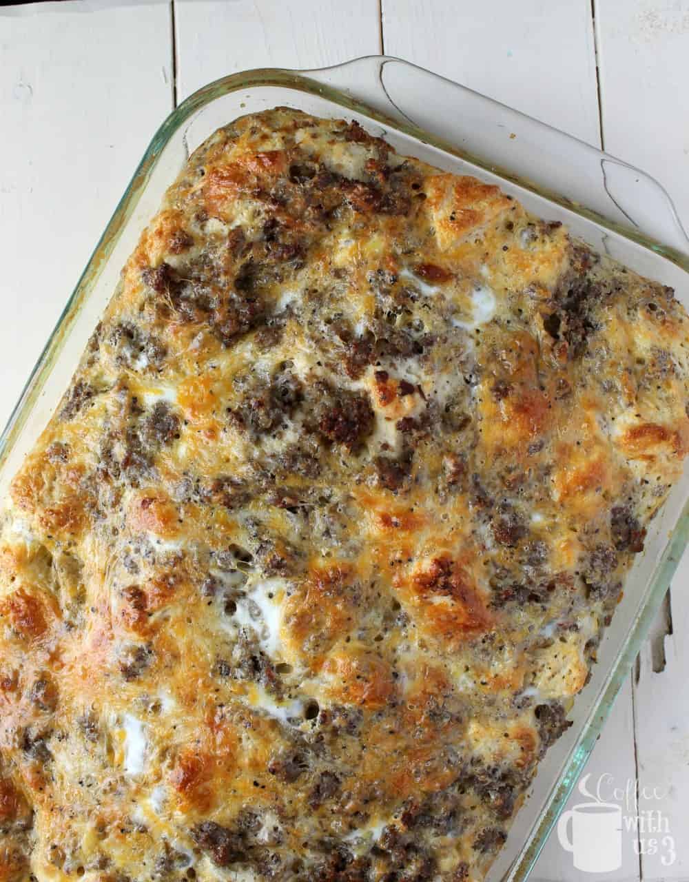 Creamy biscuits and gravy casserole is the traditional breakfast cooked all in one dish! It even includes the scrambled eggs!