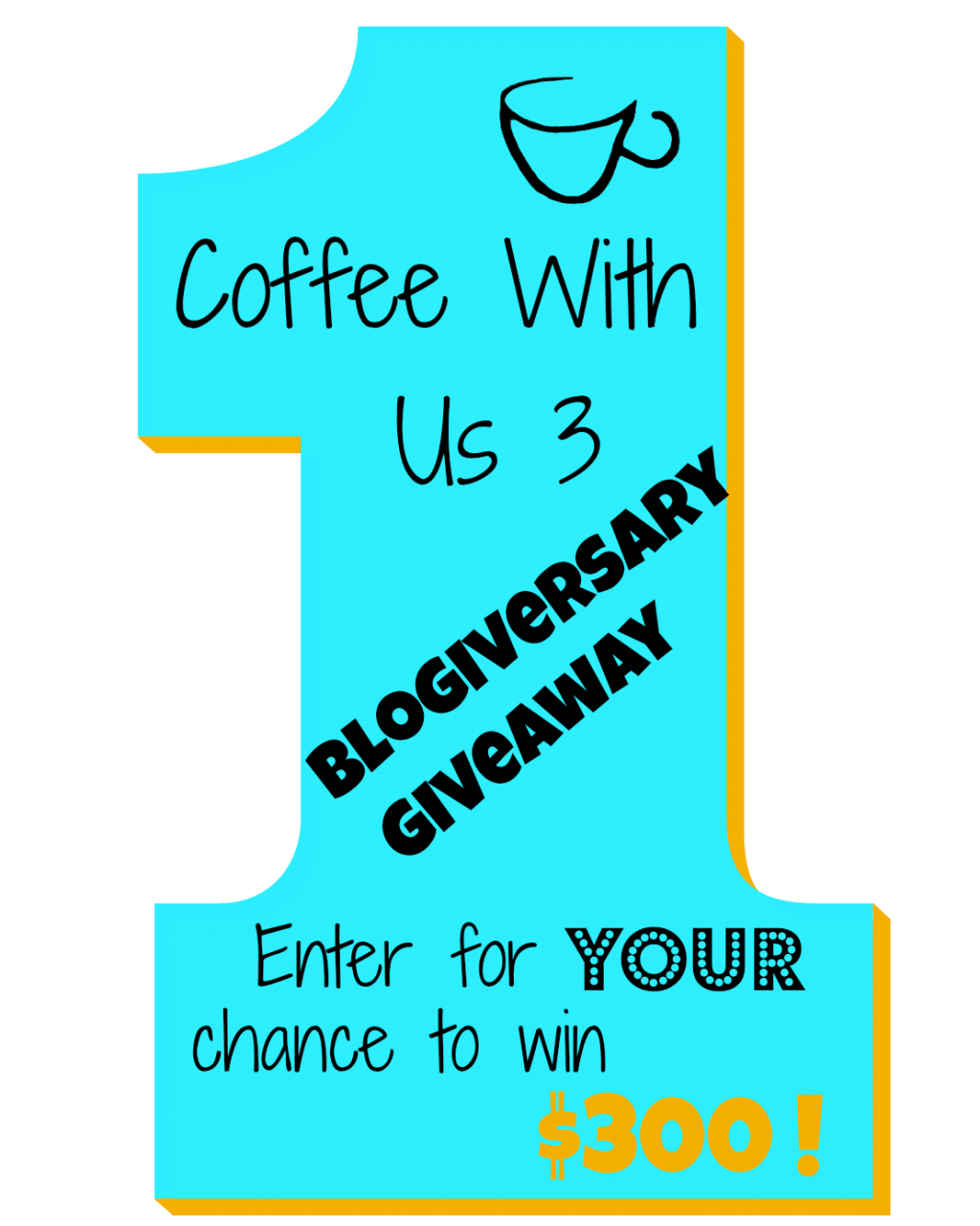 We thought it would be so much fun to celebrate our blogging anniversary, or “Blogiversary,” by giving away a huge present: $300!!!