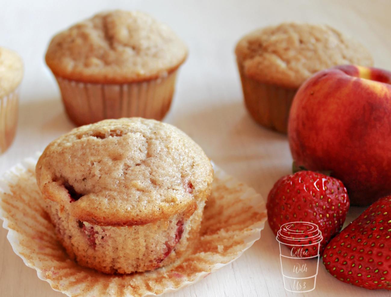 These Strawberry Peach Muffins are full of fruity flavor. Made with butter for a rich, delicious muffin that's perfect for breakfast or a snack.